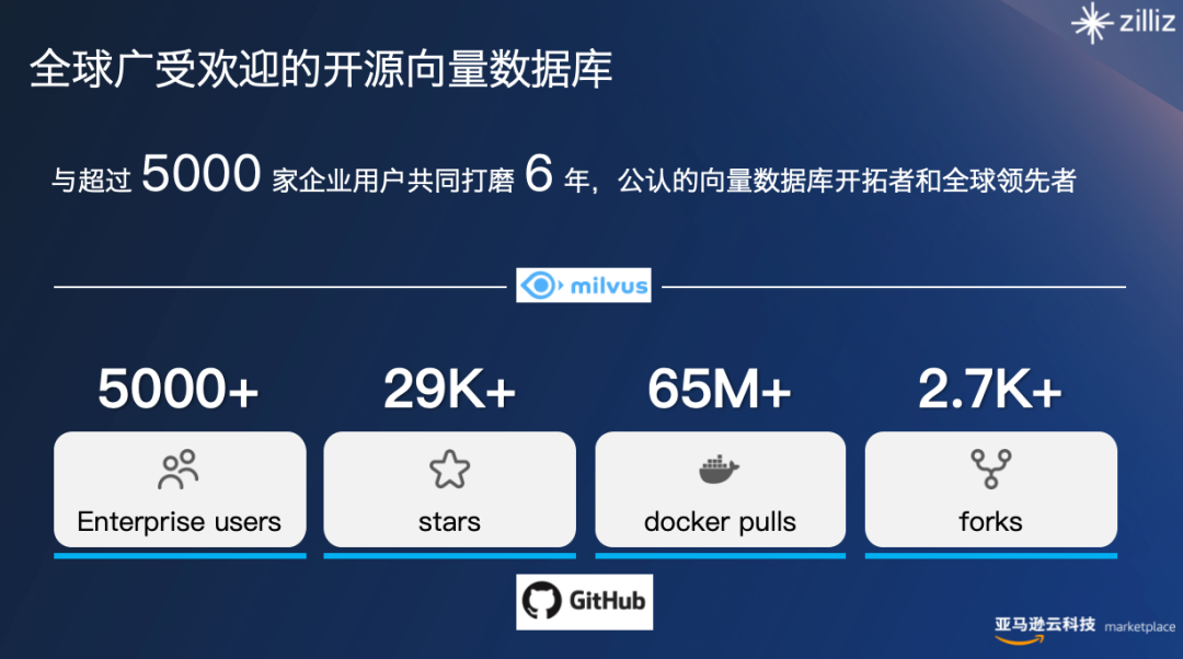 通过与超过 5000 家企业用户共同打磨 6 年,Zilliz已经成为公认的向量数据库开拓者和全球领先者,旗下开源产品Milvus,在Github获得超29K stars,是全球最受欢迎的开源向量数据库之一。
