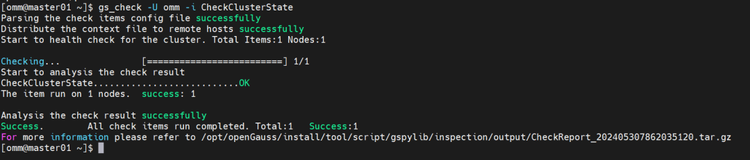 通过openGauss提供的工具查询数据库和实例状态,确认数据库和实例都处于正常的运行状态,可以对外提供数据服务。