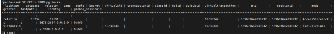 openGauss=# SELECT * FROM pg_thread_wait_status WHERE wait_status = 'acquire lock';