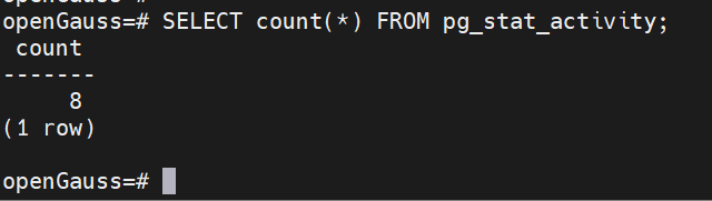 openGauss=# SELECT count(*) FROM pg_stat_activity;