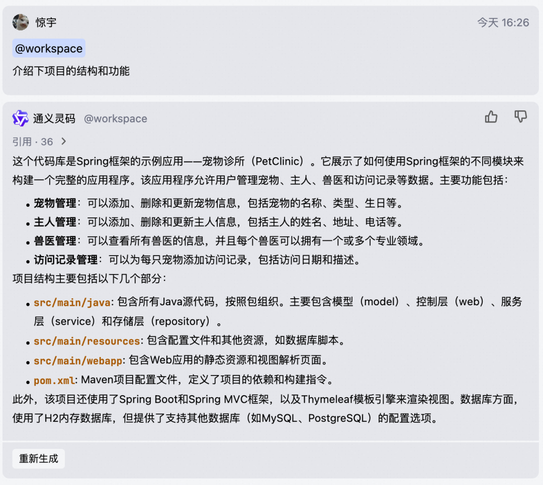 更多用例:看 Vue 项目如何用好 @workspace 能力