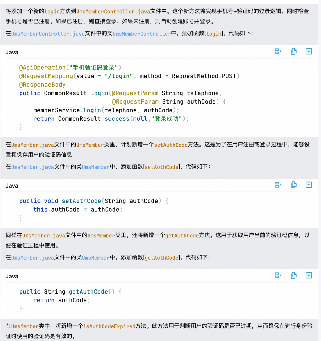 问题 2:请帮我实现一个功能,使用手机号+验证码登录,如果手机号没有注册过账号,则自动用手机号注册