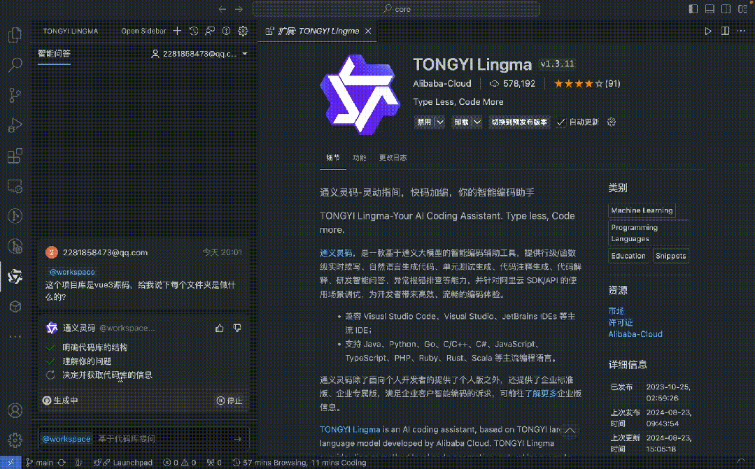 通义灵码 AI 编码助手基于通义大模型,支持代码生成、单元测试生成、问题排查、研发问答等功能,为开发者带来高效、流畅的编码体验。