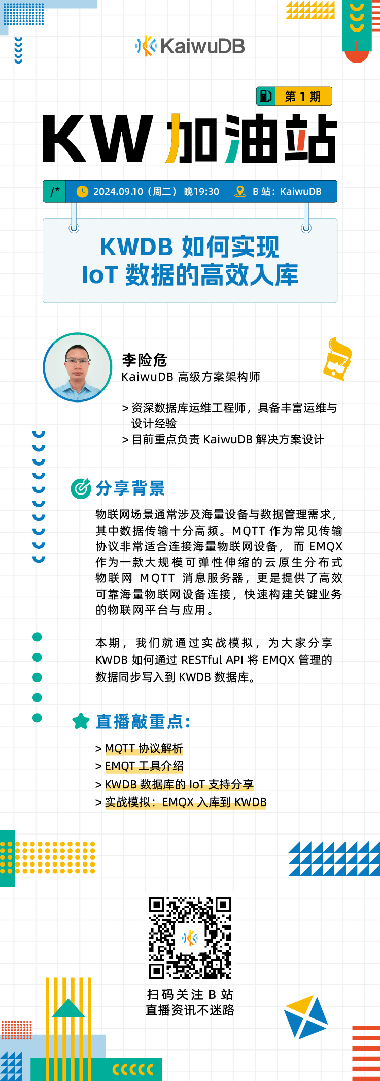 🙋《KW 加油站》是一档立足于 KWDB (KaiwuDB 社区版)分布式多模数据库的内容专栏,站主会积极邀请各路技术大牛,以 B 站线上直播、图文等多样形式,为大家分享包括底层数据库架构解析、关键应用开发、数据库优化、数据库运维、数据库落地实践等技术干货。