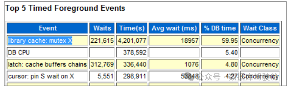 通常,主要等待事件将在问题AWR中显示为library cache: mutex X。
