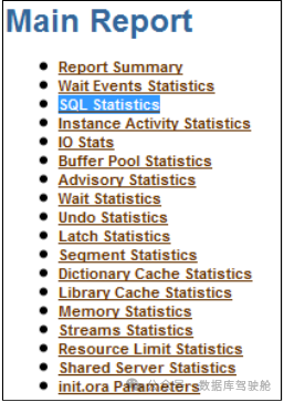 首先从AWR中检查高解析和高版本计数: 点击AWR主报告下的SQL Statistics。