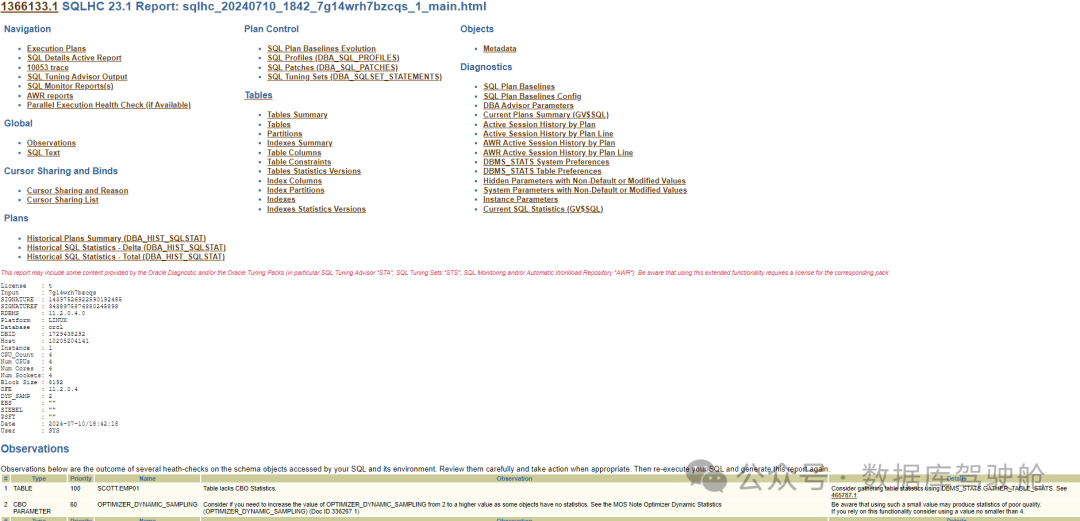 在管理和优化 Oracle 数据库的过程中,性能问题常常是 DBA 面临的一大挑战。无论是处理复杂的 SQL 查询,还是优化数据库的整体性能,找到瓶颈并进行有效优化都是至关重要的。今天,我们将介绍一个强大的工具——SQL Tuning Health-Check (SQLHC),它能帮助你轻松诊断和优化 SQL 语句性能问题。