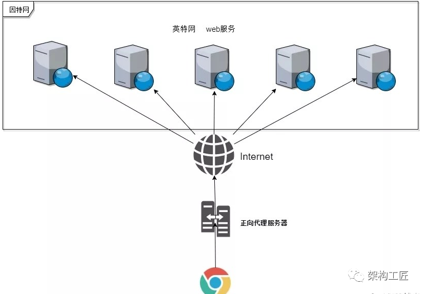 正向代理最大的特点是客户端非常明确要访问的服务器地址;服务器只清楚请求来自哪个代理服务器,而不清楚来自哪个具体的客户端;正向代理模式屏蔽或者隐藏了真实客户端信息,如下图: