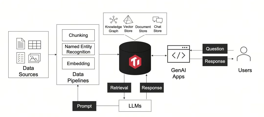 TiDB 始终走在技术前沿,2024 年 6 月 28 日,TiDB Cloud Serverless 上的 Vector Search 功能正式公测,同时整合了 AI 领域中十分常见的技术栈,自此 TiDB 有能力在 AI 时代向应用开发者提供一站式 GraphRAG 解决方案。