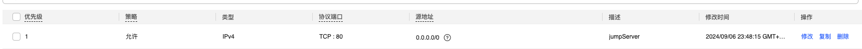 这里需要注意的是 在服务器上入口规则将80 端口放开