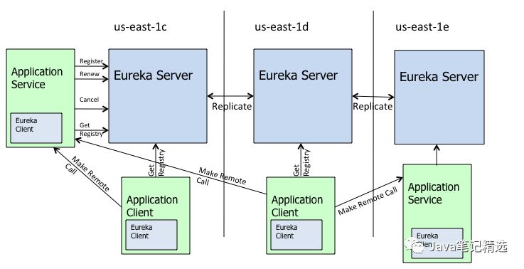 Eureka Server之间将会通过复制的方式完成数据的同步。(详见Eureka高可用章节)