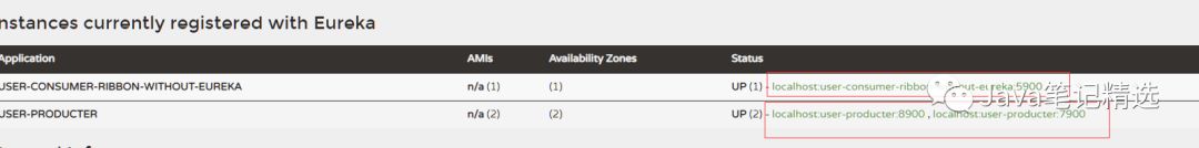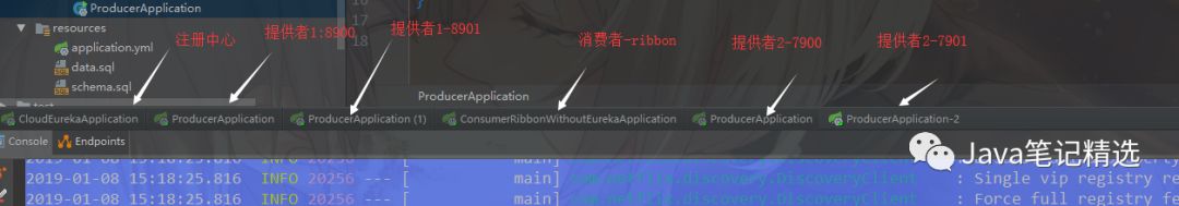 如下我们开启4个微服务,服务名称分别为:user-producter:8900,user-producter:8901,user-producter-2:7900,user-producter-2:7901