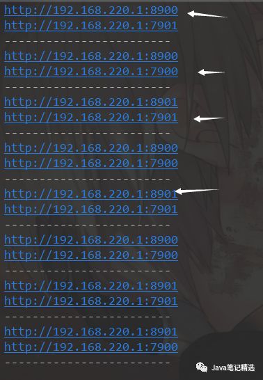 可以看到调用的服务是随机的。下篇文档讲解 Ribbon如何脱离Eureka单独使用!!!敬请期待