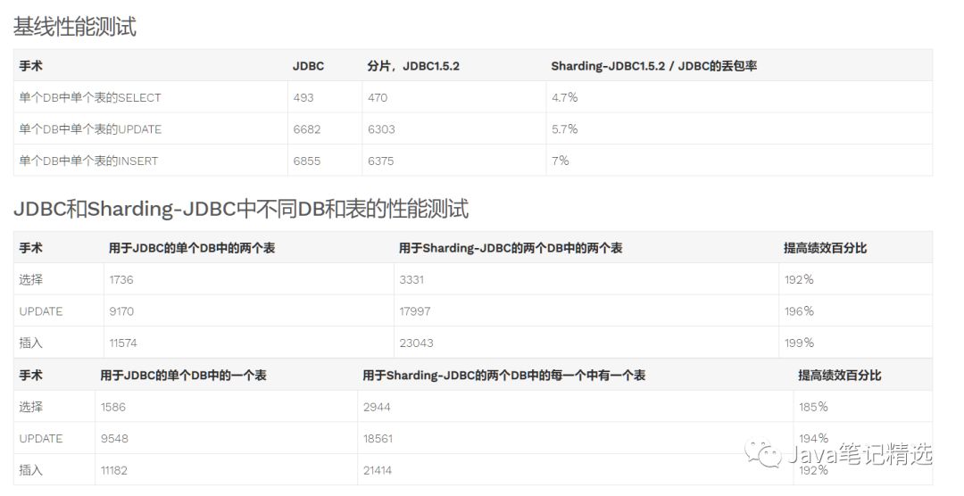性能损失:当服务器资源充足且并发数相同时,我们比较JDBC和Sharding-JDBC的性能损失,结果是与JDBC相比,Sharding-JDBC的性能损失小于7% 。