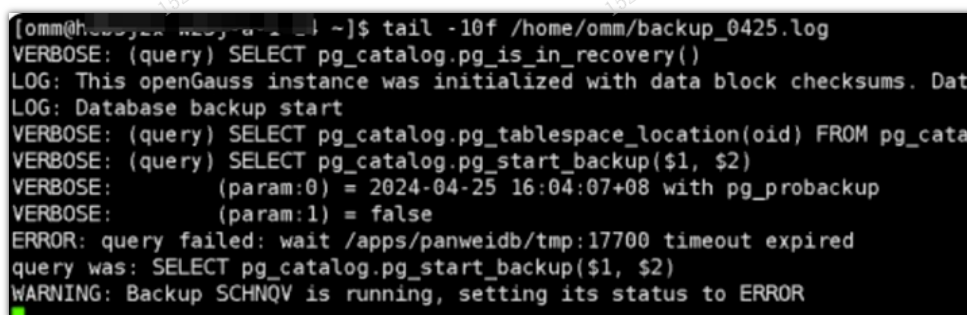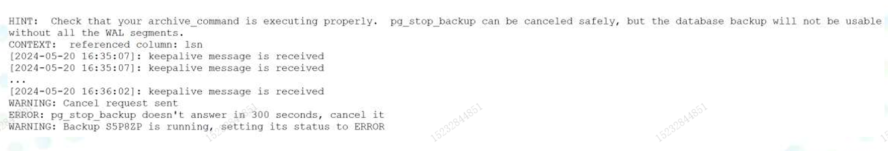 问题现象: pg_stop_backup doesn't answer in 300 seconds, cancel it