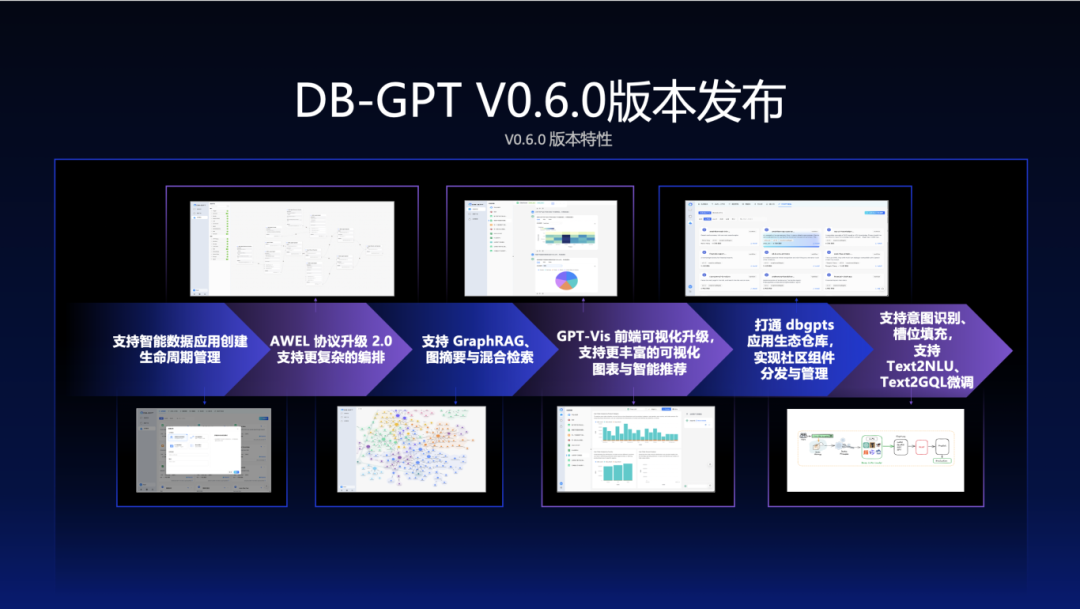 本次开源的新版本 DB-GPT v0.6.0,完整支持了数据驱动的AI原生应用生命周期管理(AI Native Data Apps-dbgpts)以及AI原生应用仓库,方便开发者构建、发布、分享AI Native Data Apps,还新增了六大特性,包括将AWEL协议升级至2.0,支持更复杂的编排;结合TuGraph,能支持图的构建与检索,进一步增强检索的准确性与召回的稳定性,以减少大模型的幻觉,在同样的检索效果下,构建Graph的成本比业界的方案少50%的Tokens;支持Agent Memory,如感知记忆、短期/长期记忆、混合记忆等;支持意图识别、槽位填充,支持Text2NLU、Text2GQL微调等。