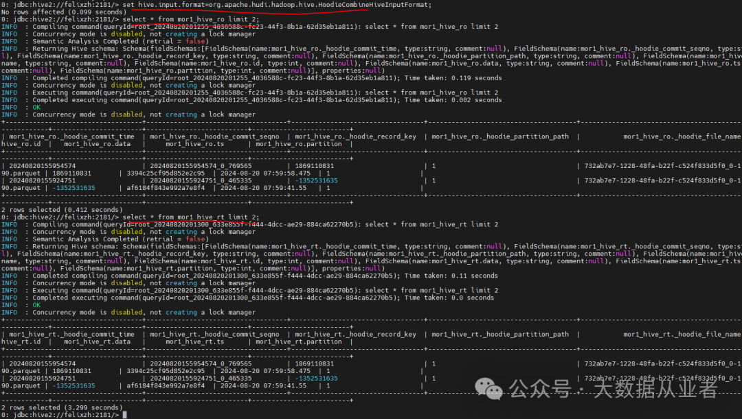 set hive.execution.engine=mr;set hive.input.format=org.apache.hudi.hadoop.hive.HoodieCombineHiveInputFormat;set hive.vectorized.execution.enabled=false;set mapreduce.map.memory.mb=8096;set mapreduce.map.java.opts=-Xmx8096m;set mapreduce.reduce.memory.mb=8096;set maprdeuce.reduce.java.opts=-Xmx8096m;