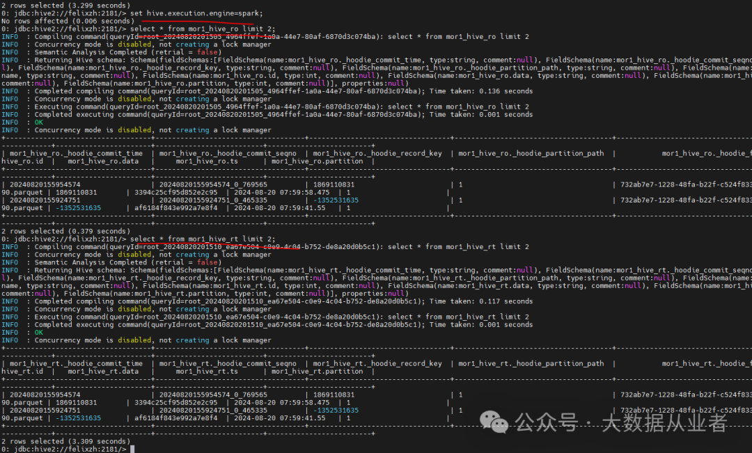 set hive.execution.engine=spark;set hive.input.format=org.apache.hudi.hadoop.hive.HoodieCombineHiveInputFormat;set hive.vectorized.execution.enabled=false;set spark.task.maxFailures=1;set spark.executor.instances=10;set spark.executor.memory=2G;set spark.executor.cores=1;set spark.default.parallelism=3;