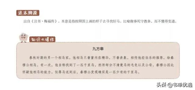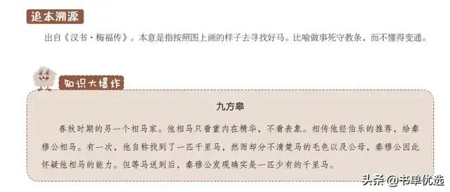 最后再通过追本溯源和知识大爆炸,加深孩子对“按图索骥”的理解,这点非常好,它大大加强了孩子在考试中对成语题型的应对能力!