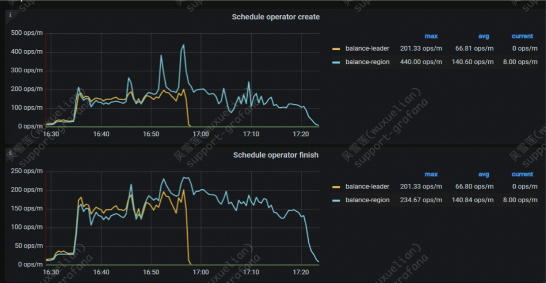 经过以上步骤,一个 balance region 的 operator 变生成了。我们可以通过 pd->operator->schedule operator create -> balance region 查看当前 operator 的产生速度.