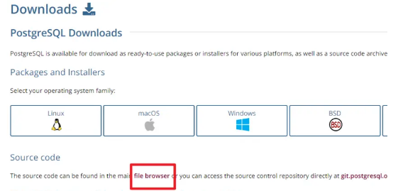 PostgreSql官方源码安装包的下载地址是:www.postgresql.org/download/