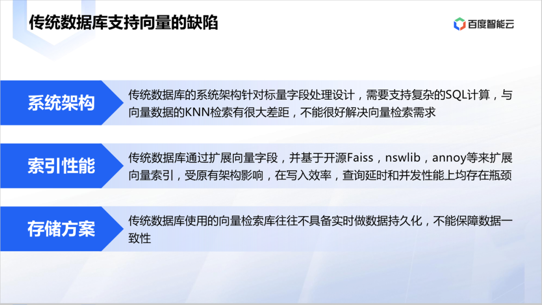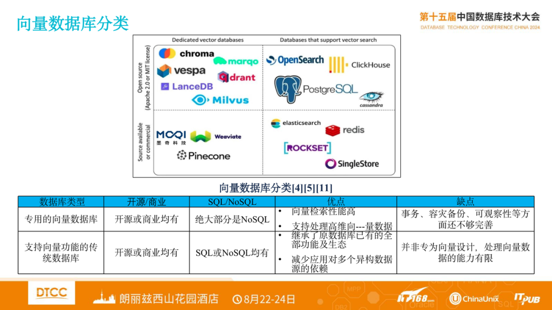 如何支持上述场景,向量数据库主要有两种产品路线:一是专有的向量数据库,一种是支持向量功能的传统数据库。可以说两种路线,各有优缺点。