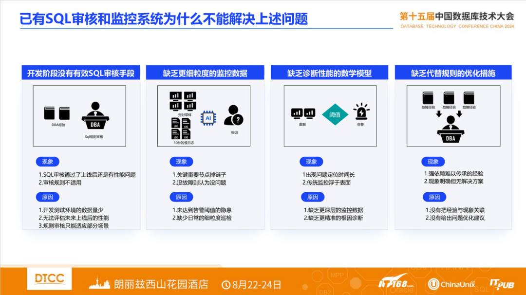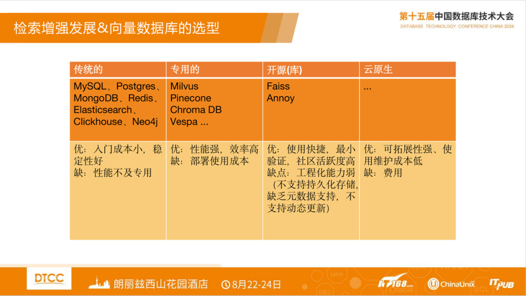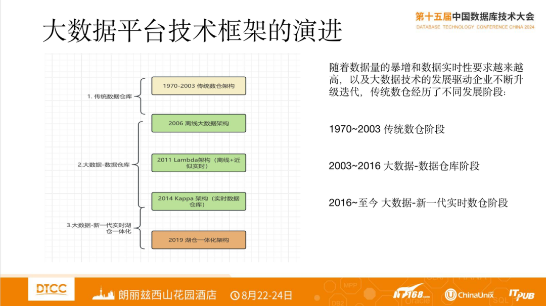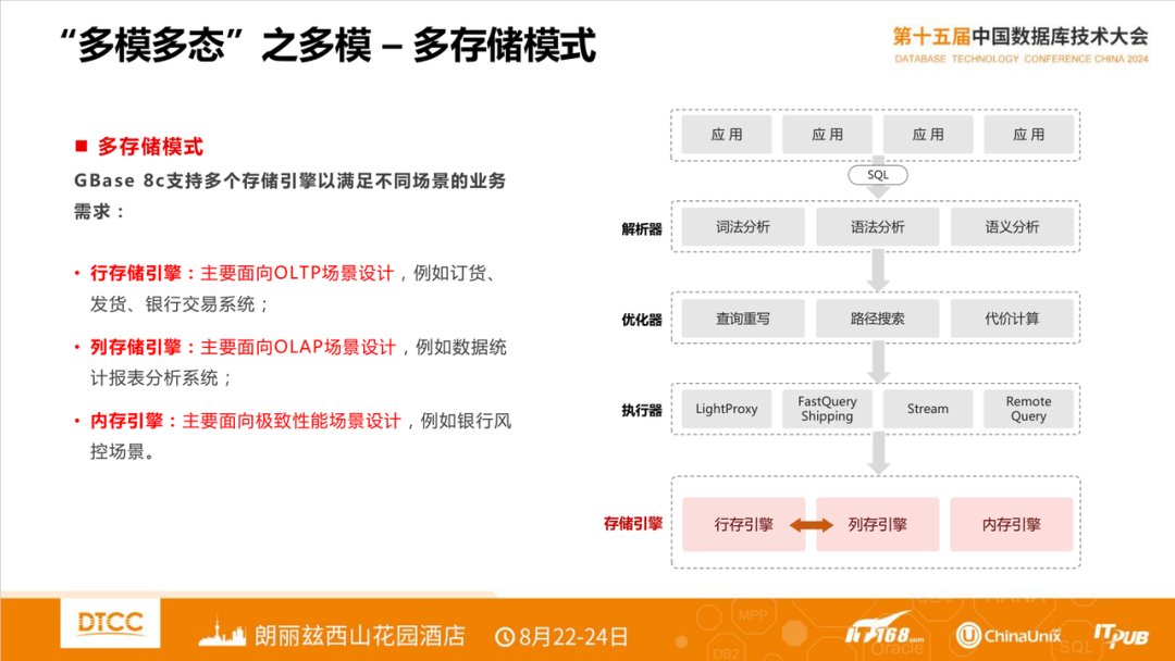 作为年度数据库领域重要的一次会议,2024 DTCC 于8月下旬在北京召开。此次大会较以往有着几点变化,一是国产厂商参与度很高,此次大会吸引了主要头部厂商参加;二是观众关注度高,此次较以往人气很热,会场议题常常座无虚席;三是演讲题目更加深化,随着国产数据库规模化推广,从选型、迁移、实施等多方面话题很受关注。下文是我此次大会部分精华内容的分享,供参考。