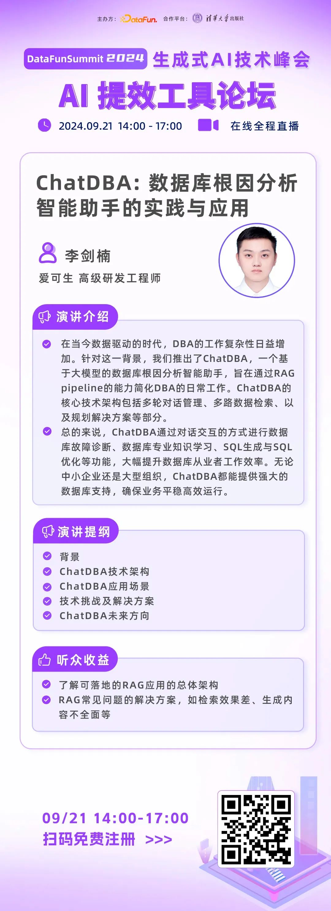 目前,ChatDBA 还在最后的准备阶段,会尽快跟大家见面。想预约试用的朋友,可以扫码文末的 预约试用 二维码或点击 原文链接。我们正在对 DBA 群体试用大模型的情况进行调研,这对我们打磨 ChatDBA 的使用体验非常重要。