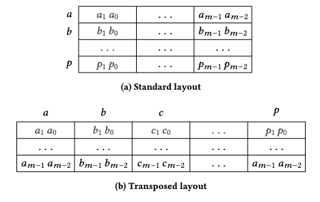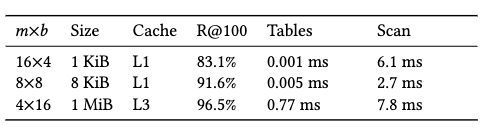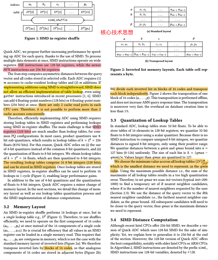 pshufb指令,可以同时在SIMD寄存器中执行16次表查找的操作。因此,可以同时执行16个向量的距离计算(查表)。也就是说,读取16个向量的第一个子码字,注意每个子码字只有比特,如下图->共16个向量的第一段子码字。