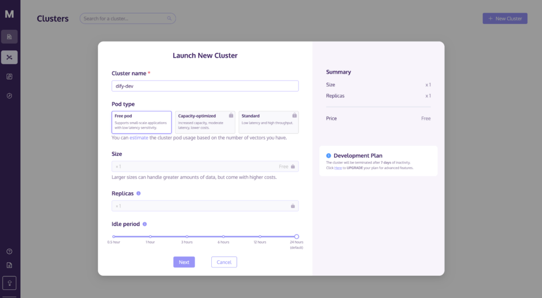 如果希望使用 MyScale Cloud,请首先访问 https://console.myscale.com 注册并登录,然后点击右上角的 New Cluster 按钮,开始创建 MyScale Cluster。