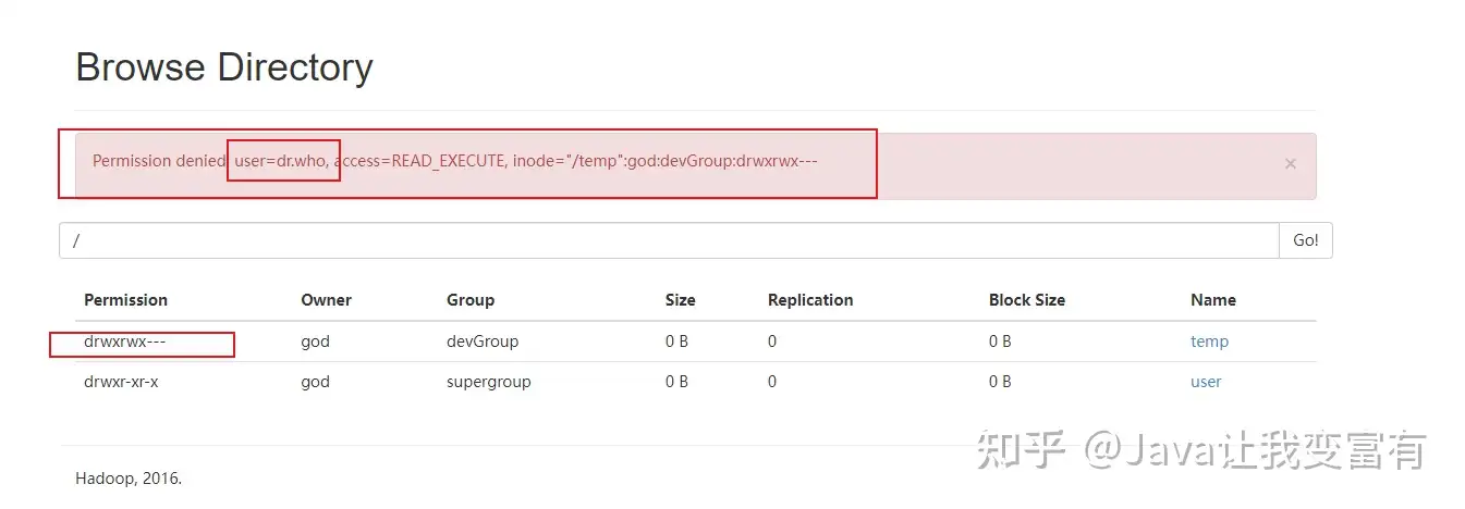 在HDFS中也有超级用户的概念,在linux中超级用户为root,在hdfs中为namenode启动用户。当前状况下hadoop的安装部署程序超级用户为root,数据存放目录的权限拥有者也为root。