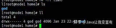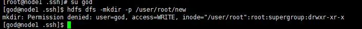 此时我们使用root用户去god用户下创建目录,我们会发现可以创建成功,因为此时的启动用户为root所以,root为超级用户。