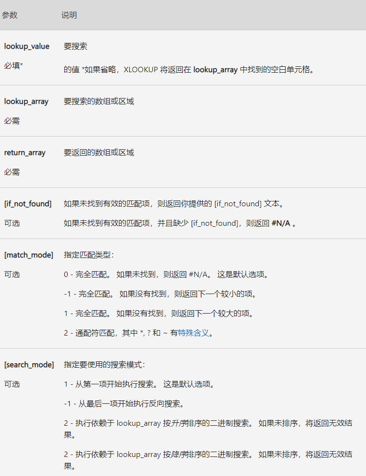 XLOOKUP(lookup_value, lookup_array, return_array, [if_not_found], [match_mode], [search_mode])