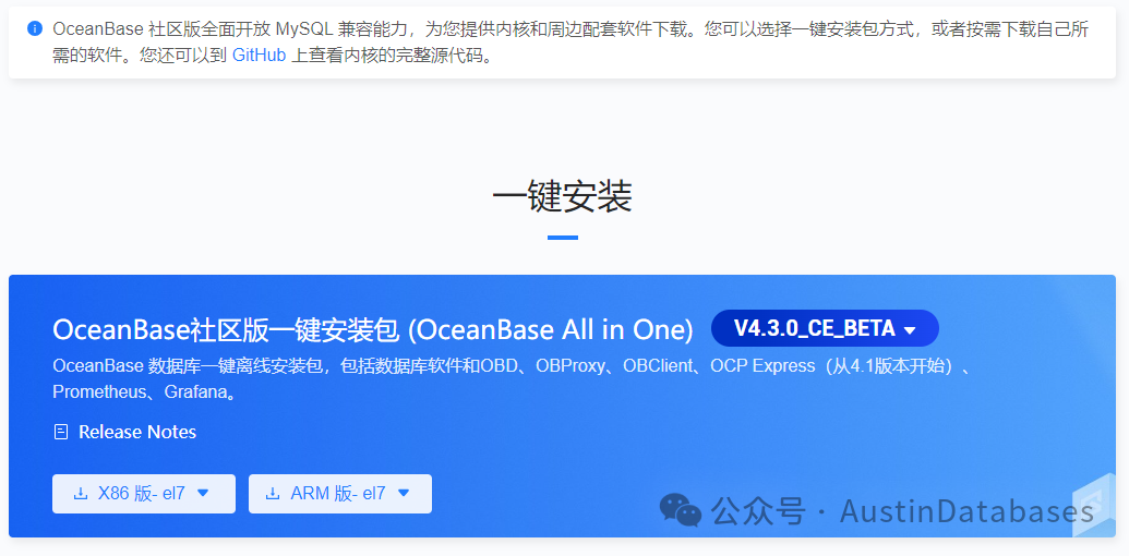 基于OB 支持国产的硬件,ARM 和 通用的X86 这里我选择了X86的一件安装包。661MB 的安装包,相对MYSQL来说,的确不大。