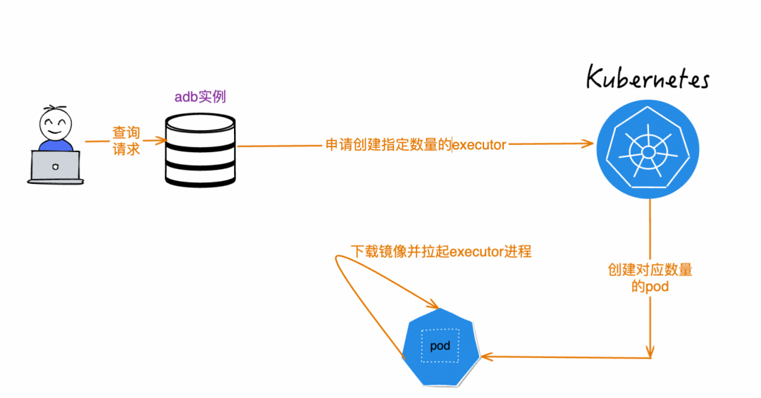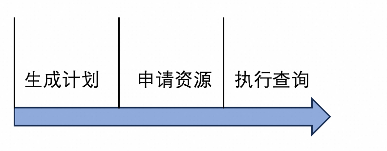 job模式默认使用Batch调度,为避免大查询的OOM问题,会强制落盘,这也导致其执行效率劣于MPP调度。对于中小查询来说,不太可能出现内存不足,而又比较看重执行效率,此时MPP调度会是更好的选择。MPP和Batch的另一个显著区别是,MPP调度为了尽可能提高节点的资源使用率,会根据节点个数切分计划,因此需要等到节点全部申请完成才能开始调度;而Batch只需要有一个节点申请完成即可开始调度。开启延迟调度后,ADB会自动根据查询的资源使用和时间预估,分辨出查询是否属于中小查询。如果是,就会自动切换到MPP调度,等到资源都申请完成后才开始调度。弹性效率是Serverless领域永远绕不开的话题。再精确再智能的资源调度,如果每次扩容或者缩容都需要大量的时间,最终的资源调度效果一定也不会很好。此外,对于job查询这种per-query的资源调度,每条查询都需要在用户提交后再申请资源,这也同样受到弹性效率的影响,如果弹性效率很低,那往往用户一条简单的点差也需要大量的时间,这无疑会影响ADB的使用体验。上图是一条job查询在提交后,在数据库内核的生命周期包括三步:生成计划、申请资源、执行查询。影响弹性效率最关键的就在于申请资源这一步。