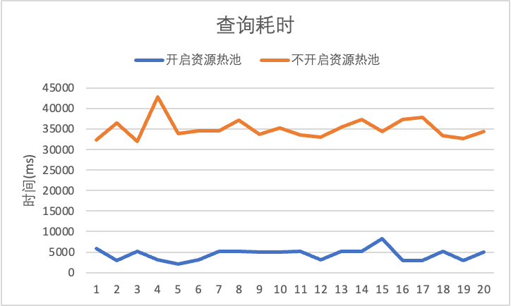 如果有用户实例接收到job查询后,控制节点不再直接向k8s集群申请资源,而是先尝试询问资源热池,是否有与实例版本一致的节点,如果有,就直接使用热池中的节点,如果没有,再尝试从k8集群申请资源。缓存池在成功申请之后,会补出对应数量的节点,维持缓存池大小的稳定。RT:RunningTime,查询的执行时间。
