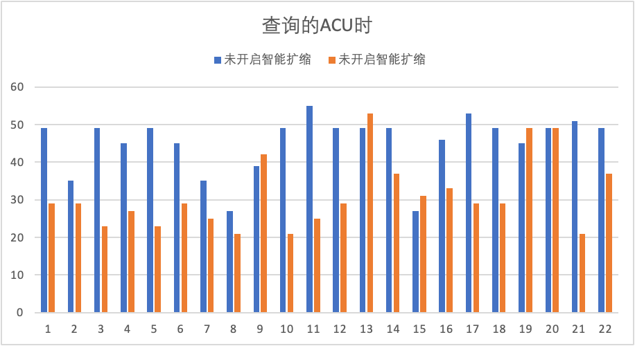 基于tpch100g测试,得到了上图所示的ACU消耗。能看到在开启智能扩缩之后,绝大多数的查询的负载都显著降低。相较于开启前,智能扩缩让所有查询的总ACU耗时降低30.4%。相较于之前的弹性模型,新的智能化弹性模型在以下三个方面都有极大提升: