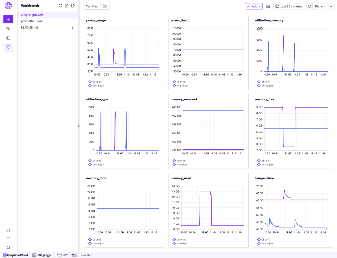 下图为一个实时监控 GPU 服务器的性能监测看板示例:
