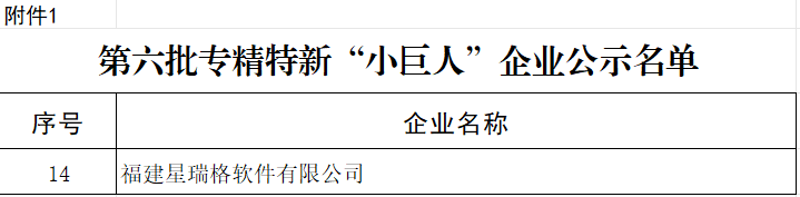 近日,福建省工业和信息化厅发布了《关于福建省第六批专精特新“小巨人”企业和第三批专精特新“小巨人”复核通过企业名单的公示》,福建星瑞格软件有限公司(以下简称星瑞格)上榜第六批专精特新“小巨人”企业名单,该荣誉是目前全国中小企业评定工作中最高等级、最具权威的荣誉称号。
