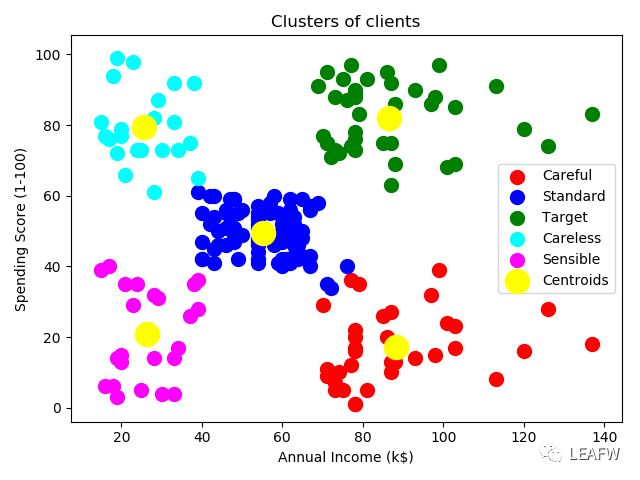 我们这次要用到的数据集部分如下,反映的是一个购物商场的购物信息。最后一列Spending Score是购物商场根据客户的信息打出的客户的评分,分数越低意味着客户花的钱越少,越高以为着客户花的越多。商场希望通过对客户的年收入和购物指数来进行分群。