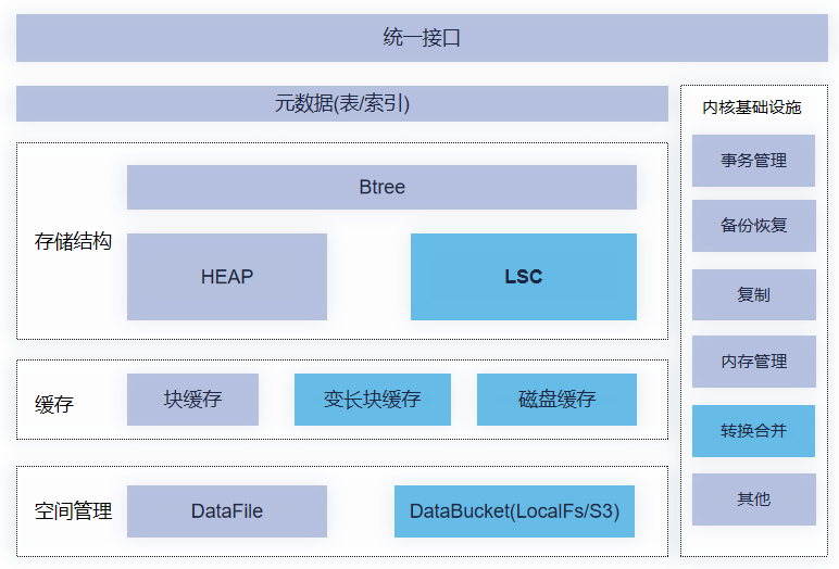 在数据缓存上,LSC根据其数据特征扩展实现了变长块缓存。此外实现了本地磁盘缓存来加速存算分离下的数据访问。