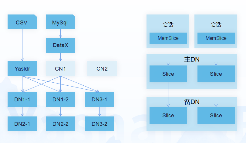 方式1:Yasldr工具导入。用于离线导入场景,通过客户端分批,直连DN(数据节点)等技术,可达到单DN 300MB/S的导入速度。
