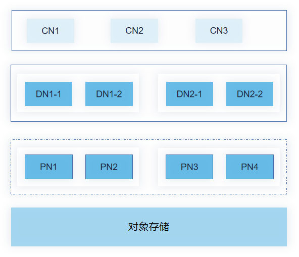 此外通过对象存储分离存储,可实现计算节点的无状态化。如上图中的PN节点,其本身不持久化任何数据,元数据通过DN获取,数据从对象存储获取,因而可以根据业务需要快速的扩缩。从而大幅降低业务成本。