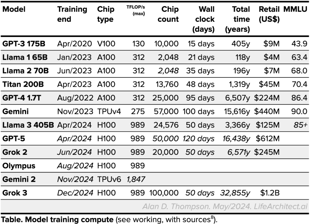 硬件性能是端侧模型考虑的首要因素,2024年统计的全球知名大模型需要的算力情况可知,各路知名大模型对硬件的要求至少都是A100或者H100这样的硬件,算力也从130 TFLOP/s到1000 TFLOP/s不等。