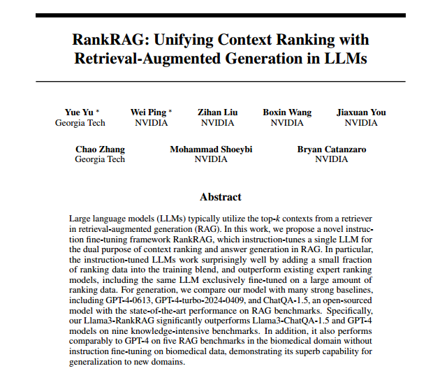 RankRAG:在大模型中统一检索增强生成与上下文排序