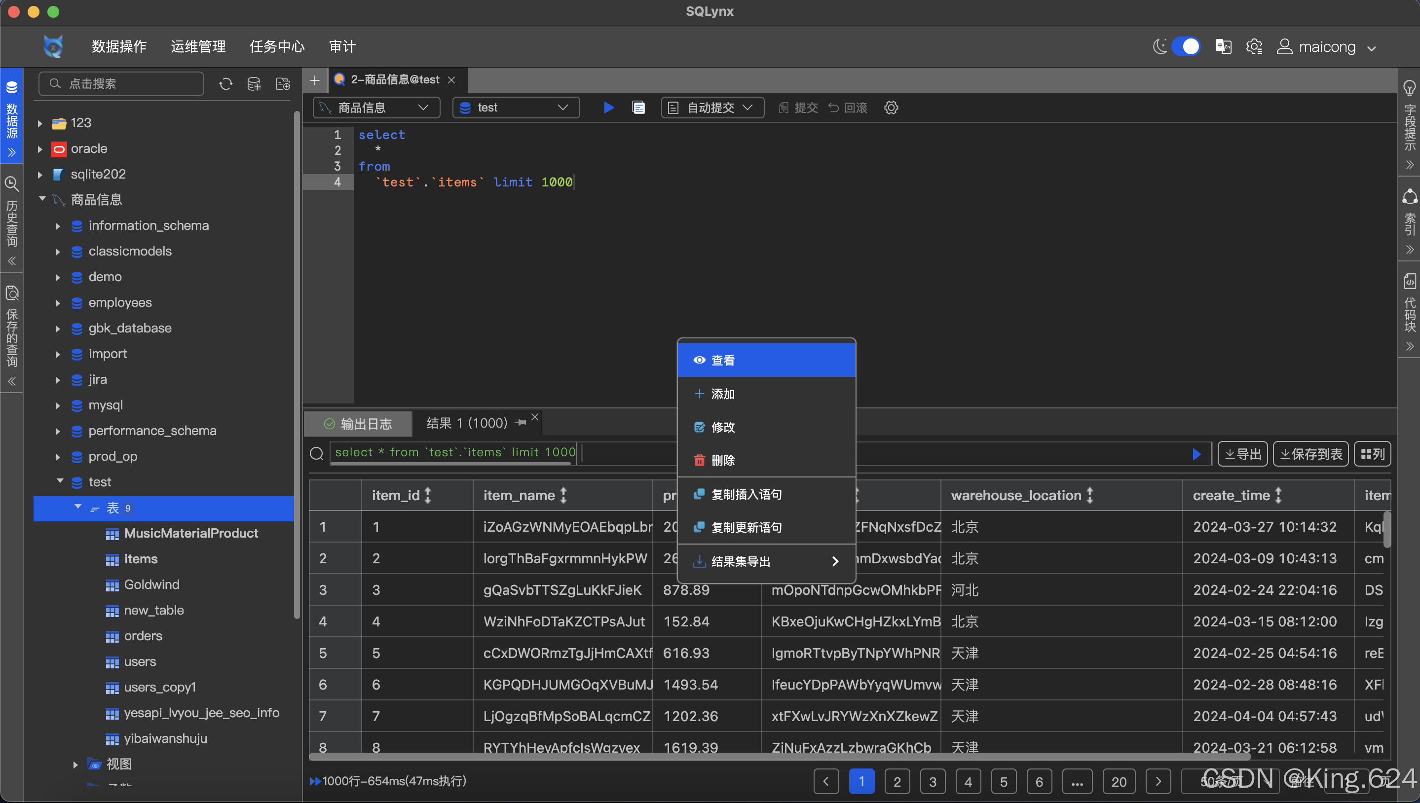 支持众多数据源:sqlynx不仅支持mysql、postersq等主流数据库,还支持达梦、人大金仓等国产数据库