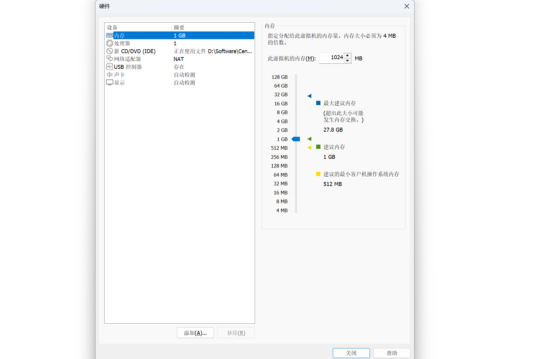 选择自定义硬件,硬件设置,根据需要及本机配置,