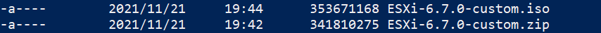 export-esximageprofile -imageprofile ESXi-6.7.0-custom -exporttoiso -filepath .\ESXi-6.7.0-custom.iso -nosignaturecheck -Force