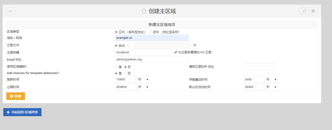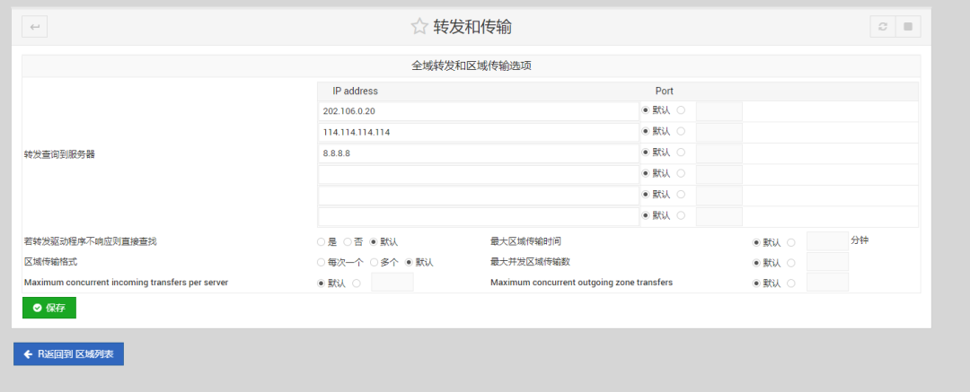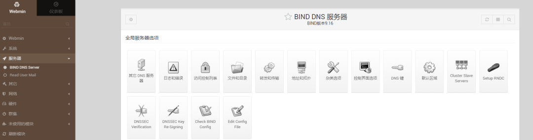 设置中文后打开bind dns server页面