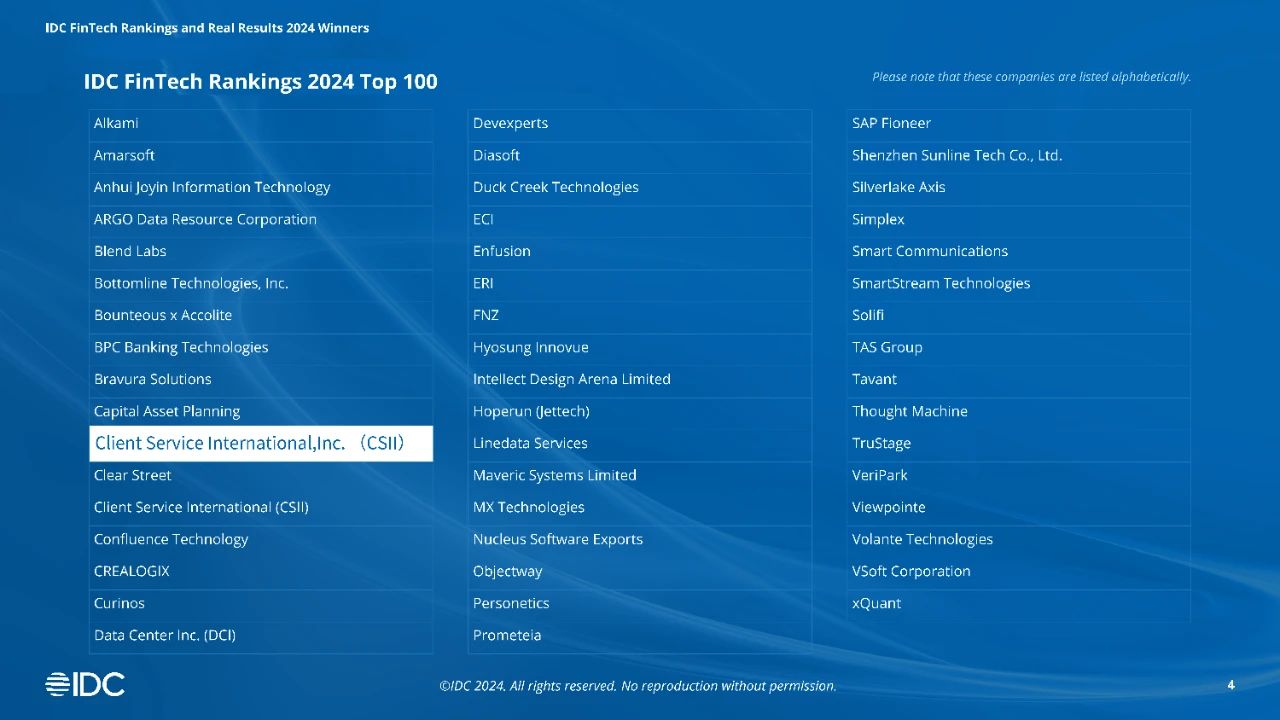 近日,备受瞩目的2024年度IDC全球金融科技排行榜(IDC FinTech Rankings)正式揭晓。与往年相似,今年榜单多数席位仍被国外厂商占领。而中国金融科技领军企业科蓝软件(股票代码:300663)凭借其卓越的创新能力和深厚的行业积累,突破重围,再次荣耀上榜,稳居全球金融科技百强之列,更与CREALOGIX、Alkami等国际知名金融科技企业并肩。科蓝软件不仅在国际舞台上展示了中国金融科技品牌的国际影响力再升级,也赢得了全球业界的广泛认可与赞誉。“IDC FinTech Ranking”作为国际金融科技领域的权威榜单,自创办以来已走过二十载春秋,其影响力与公信力不言而喻。本次评选依旧分为金融科技厂商(Top 100)和综合行业IT服务厂商(Enterprise 50)两大类别,依据厂商在2023年度的硬件、软件及服务综合营收进行排名。科蓝软件凭借其在金融科技领域的持续深耕与卓越表现,成功蝉联百强席位,进一步巩固了其在全球金融科技领域的领先地位。自成立以来,科蓝软件始终致力于以科技创新推动金融行业的数字化转型。公司深耕银行渠道类、业务类和管理类等多个领域,为金融机构提供包括分布式数据库、银行网点智能设备、电子银行系统、互联网金融类系统、网络安全系统以及银行线上线下一体化核心业务系统在内的全方位解决方案。其中,SUNDB数据库作为科蓝软件的明星产品,凭借其完全自主知识产权和高自研率(98.31%),在基础软件创新领域独树一帜,为银行、电信、政府、军工、能源、交通、保险、证券等国家关键信息基础设施产业提供了坚实的技术支撑。